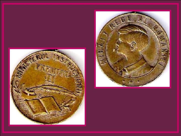 Obiceiul epocii era de a se bate medalii şcolare ce erau oferite absolvenţilor merituoşi. Exemplificăm prin două astfel de medalii, bătute cu chipul Regelui Mihai, copil fiind.
