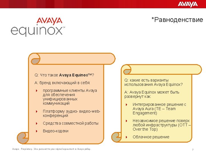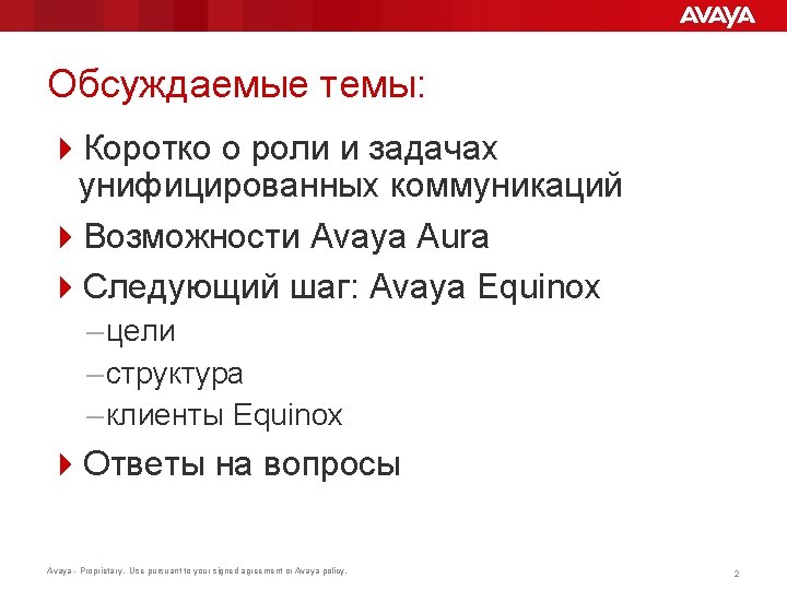 Avaya Equinox Слушать, видеть, действовать! vandreev@avaya. com +7 812 329 7202