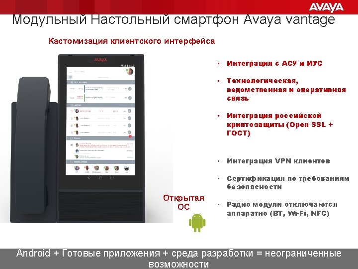 Единый интерфейс на всех устройствах Android Windows Avaya - Proprietary. Use pursuant to your signed agreement or Avaya policy. mac. OS 12
