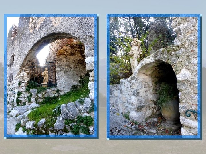 Les ruines de Castel Nuovo, implanté sur un contrefort du mont Macaron, sont un haut lieu historique. En contrebas, à l’emplacement actuel du village, se trouvent des vestiges d’une villa romaine. Le village primitif fut délaissé vers la fin du VIe siècle pour s’implanter en hauteur afin d’échapper à l’insécurité créée par les incursions fréquentes des Lombards et des Sarrasins. Divers éléments défensifs se superposèrent au cours des temps. Puis, à la fin du XVIIe siècle et surtout après le traité d’Aix-la-Chapelle en 1748, se sentant en sécurité, les habitants redescendirent pour se rapprocher des terres cultivables et des sources d’eau, recolonisant le site primitif de Villa Vetula. C’est un bel exemple de « perchement » et « déperchement » dictés par le souci de mise en sécurité des biens et des personnes !