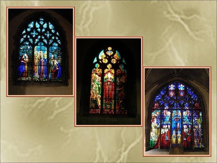 Ci-dessous, le vitrail de la confrérie de la Trinité. Ci-dessus, la confrérie de la Trinité secourt les malheureux.
