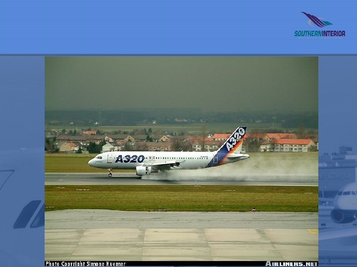 Hydroplaning • Dynamic hydroplaning: is due to standing water • Viscous Hydroplaning: occurs on a smooth surface with a thin layer of water (most common on the rubber streaked surface at the touchdown zone). • Reverted Rubber Hydroplaning: is after a long skid when the hot tire boils the water on the runway surface under the tire and the steam prevents tire contact.