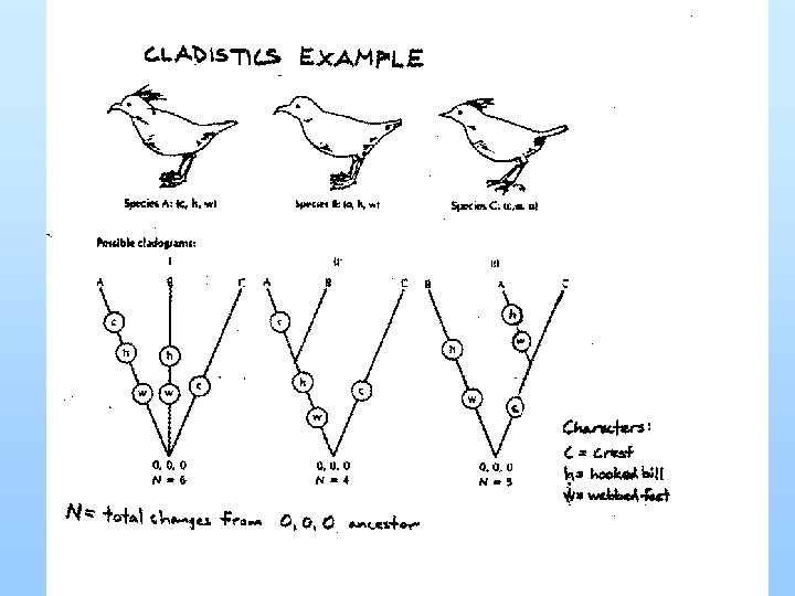 Morphology • Physical characteristics used for establishing phylogenies must be shared derived characters, rather than primitive characters. • If two birds share a derived character, we can hypothesize that they shared a common ancestor with that same derived character.