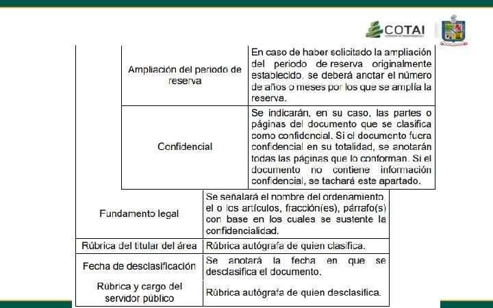 • NOTA: Tratándose de información reservada, los titulares de las áreas deberán revisar la clasificación al momento de la recepción de una solicitud, para verificar si subsisten las causas que le dieron origen.