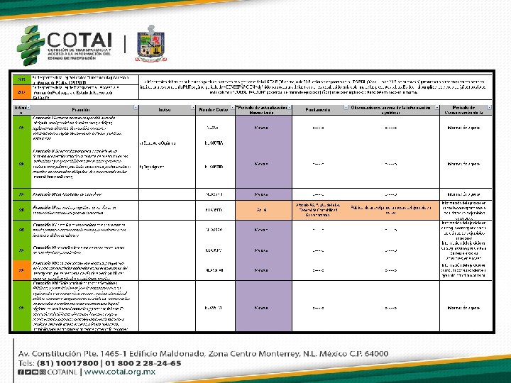 Esta será nuestra Tabla de Aplicabilidad como sujeto obligado, en donde podemos destacar que en caso de que alguna fracción no llegare a aplicarnos y nosotros la tenemos como aplicable, podremos iniciar un Procedimiento de Modificación de Tabla, siempre y cuando fundemos y motivemos su no aplicabilidad.