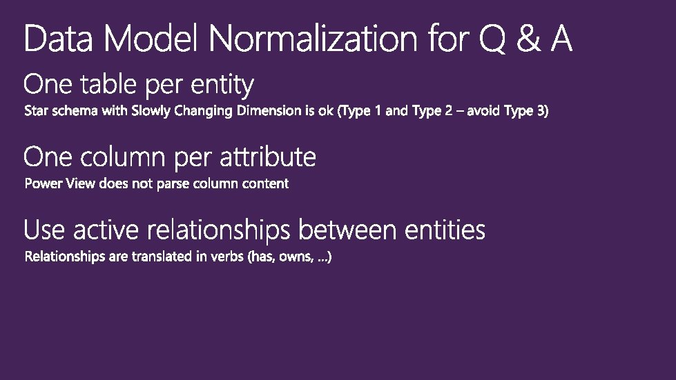 Avoid unnatural hierarchies Use natural hierarchies Q 1 January Q 1 2014 January 2014 February March Q 2 February 2014 March 2014 Q 2 2014 Q 1 January Q 1 2015 January 2015
