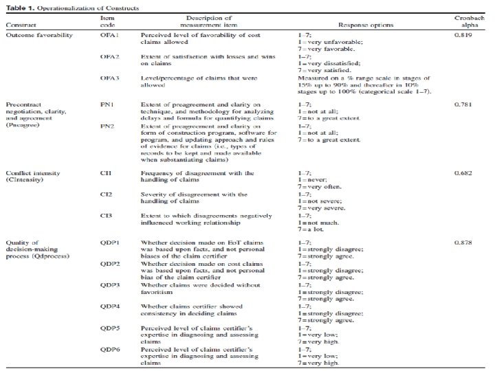 Findings Ø Whether administrator's decision favorable or not the contractor reported lower intensity of conflicts when there is clear precontrac negotiation and agreement. ØHigher levels of precontract negotiation were also associated with higher quality of decision making. ØWhile higher levels of the quality of the decision-making process were associated with a lower intensity of conflict.