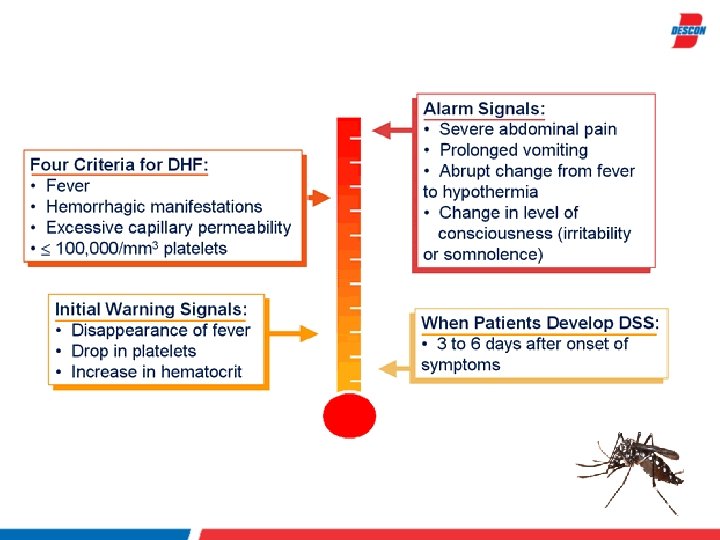 Symptoms of Dengue Fever • Fever • Headache • Muscle and joint pain • Nausea/vomiting • Rash • Hemorrhagic manifestations Patients may also report other symptoms, such as itching and aberrations in the sense of taste, particularly a metallic taste. In addition, there have been reports of severe mouth dryness after the acute phase of the illness.