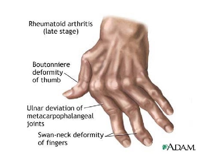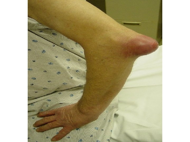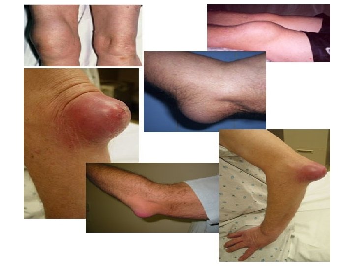 Bursitis • Inflammation of the Bursa (fluid filled sac surrounding the joint). • A bursa can become inflamed from injury, infection (rare in the shoulder), or due to an underlying rheumatic condition. • Bursitis is typically identified by localized pain or swelling, tenderness, and pain with motion of the tissues in the affected area.