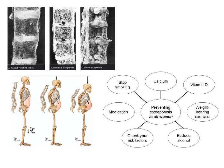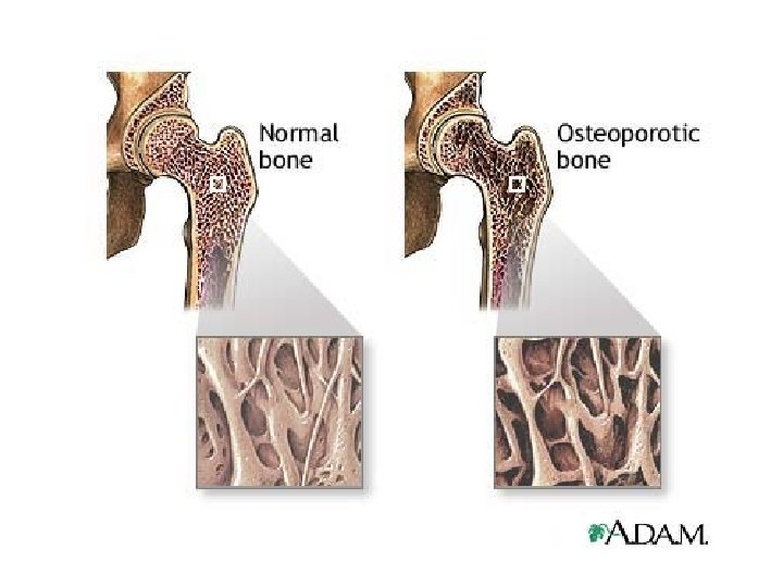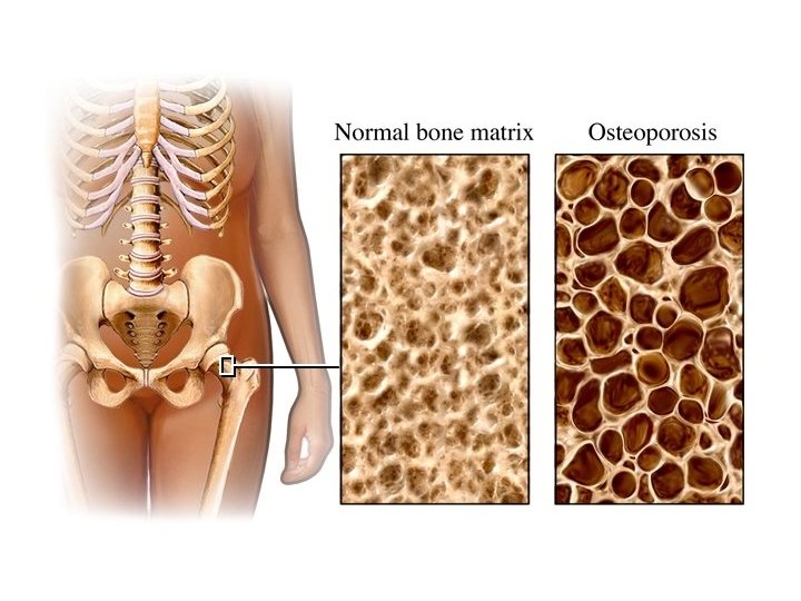 Osteoporosis • Osteoporosis is a term that means "porous bones. " It is a skeletal disease affecting women and men. Osteoporosis is a condition in which bones have lost minerals especially calciumムmaking them weaker, more brittle, and susceptible to fractures (broken bones). Any bone in the body can be affected by osteoporosis, but the most common places where fractures occur are the back (spine), hips, and wrists.