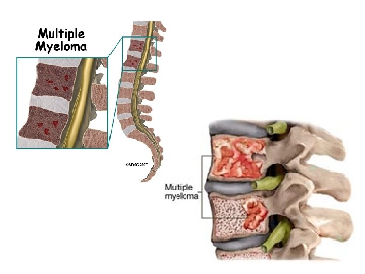 Myeloma • Multiple myeloma is a cancer in which abnormal cells collect in the bone marrow and form tumors. Sometimes these abnormal cells (called myeloma cells) collect in only one bone and form a single tumor known as a plasmacytoma. However, in most cases, the myeloma cells collect in many bones, forming several tumors and causing other problems. When this happens, the disease is called multiple myeloma.