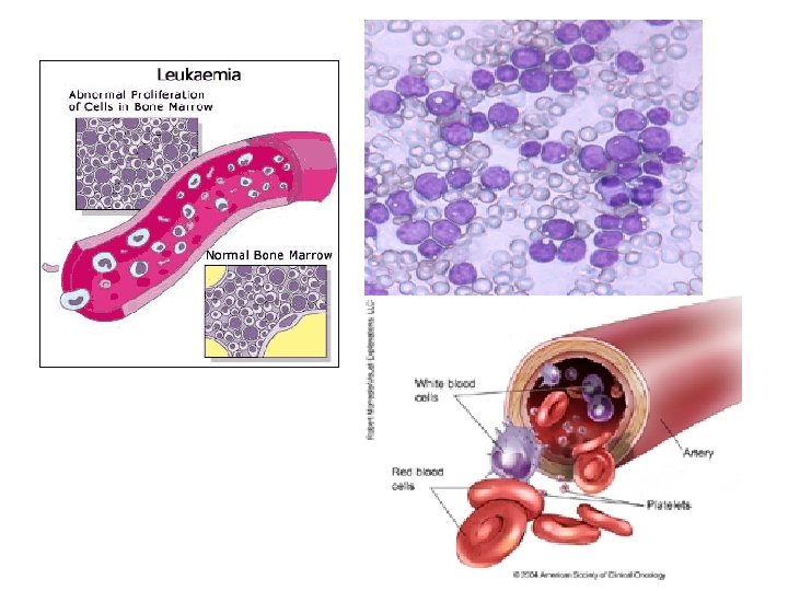Leukemia • Leukemia is cancer of the blood cells. It starts in the bone marrow, the soft tissue inside most bones. Bone marrow is where blood cells are made. When you are healthy, your bone marrow makes: ・White blood cells, which help your body fight infection. ・Red blood cells, which carry oxygen to all parts of your body. ・ Platelets, which help your blood clot. When you have leukemia, the bone marrow starts to make a lot of abnormal white blood cells, called leukemia cells. They don't do the work of normal white blood cells, they grow faster than normal cells, and they don't stop growing when they should.