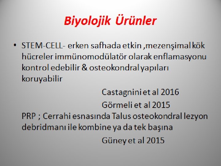 SONUÇ AYAK BİLEĞİ OALERİNİN ÖNEMLİ BİR KISMI POST TRAVMATİK OLDUĞUNDAN TEDAVİSİNE ÖNEM VERİLMELİ NON FARMAKOLOJİK TEDAVİ UYGULAMALARI ÜZERİNDEKİ ÇALIŞMALAR ÖNEMLİ IL-1 VE NERVE GROWTH FACTOR (NGF) İNHİBİSYONU ETKİN ÖZELLİKTE… CERRAHİ DIŞI TEDAVİLER BAŞARISIZ İSE CERRAHİ GENETİK ANALİZLER İLE ÖNCEDEN TESPİT BEKLENTİSİ PRİMER OA LERDE ÖNEMLİ
