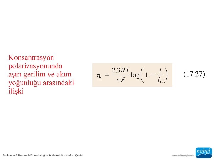 • Konsantrasyon polarizasyonu çözeltide reaksiyon hızının yayınma ile sınırlı olması durumunda ortaya çıkar.