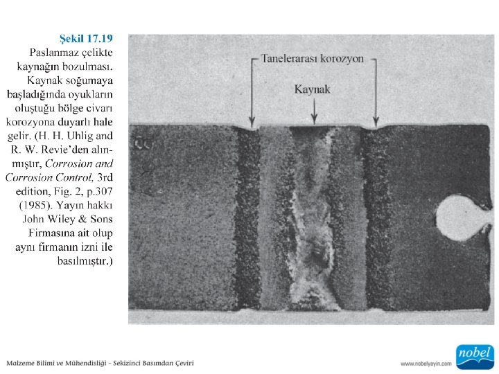 • Taneler arası korozyon, özellikle paslanmaz çeliklerin kaynağında, kaynak bozunması adı verilen ciddi bir probleme yol açar. Şekil 17. 19’da bu tür taneler arası korozyon gösterilmiştir.