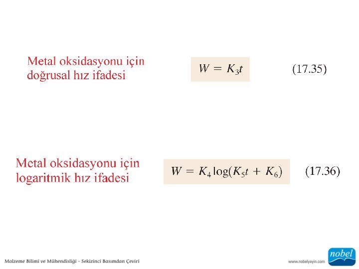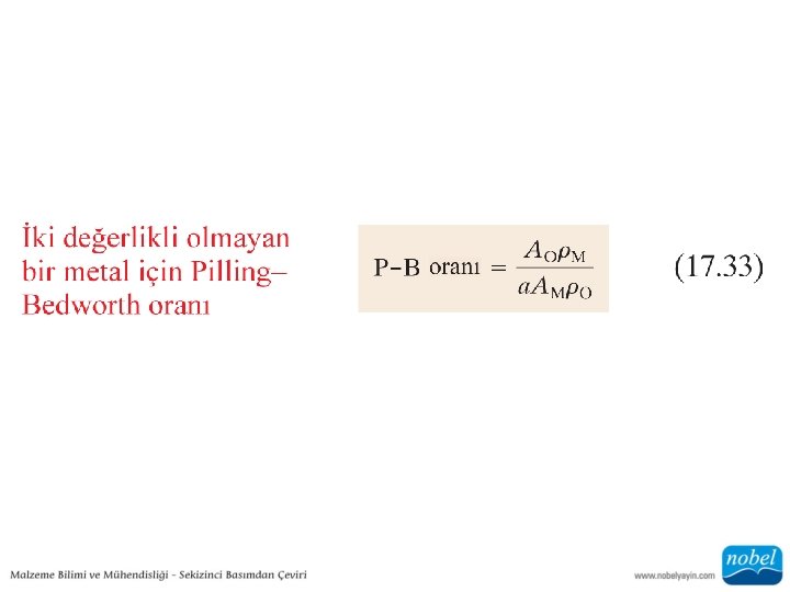• Oksidasyon hızı (yani film kalınlığının artış hızı) ve oksidasyon sonucu metalin daha fazla oksitlenmesini engelleyen oksit filmi oluşturma eğilimi, oksit ve metalin bağıl hacimleriyle ilgilidir. Bu hacimlerin oranı, Pilling–Bedworth oranı olarak adlandırılan şu ifadeyle tespit edilir: