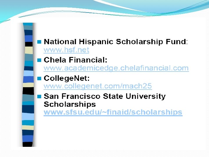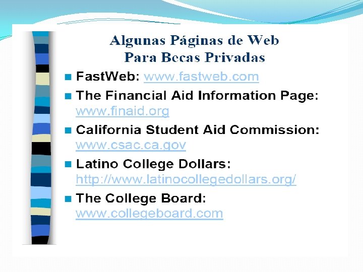 Para mas información Sitios importantes: www. Student. Aid. gov (Federal grants, Work-Study, Loans) www. csac. ca. gov (Cal Grant, Chafee, Middle Class Scholarship, CA DREAM Application) http: //home. cccapply. org/money/bog-fee-waiver (BOG fee waiver for community colleges) www. californiacashforcollege. org