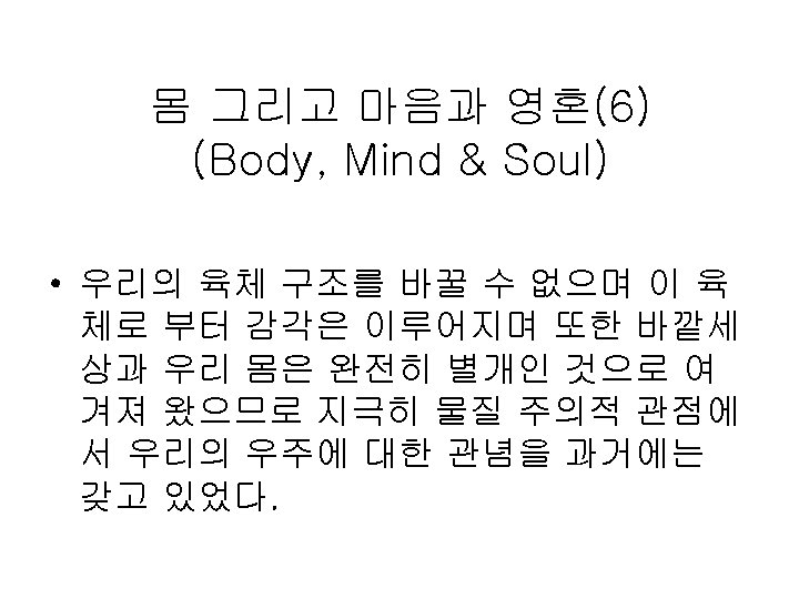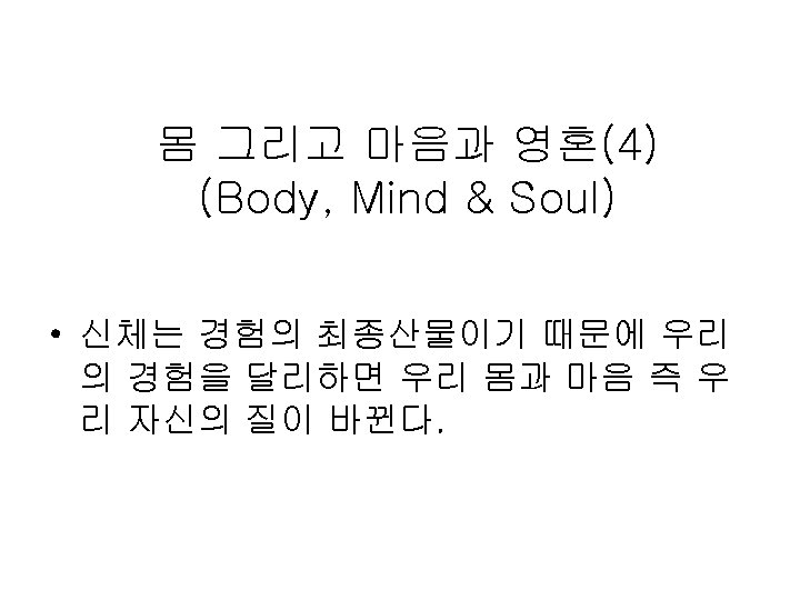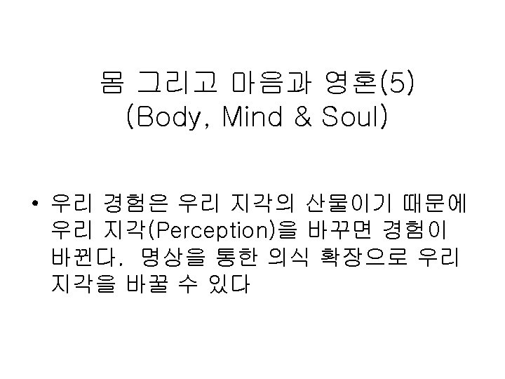 The Five Elements and the Five Senses • Element Space Air Fire Water Earth Perceived with Ear Skin Eye Tongue Nose Subtle Element Sound Touch Sight Taste Smell