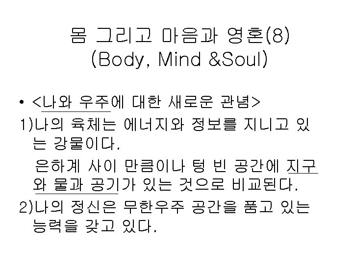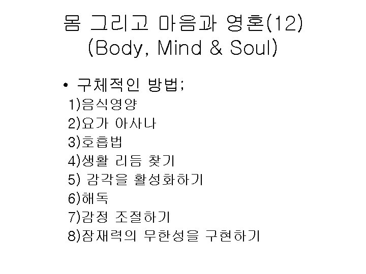 The Three Doshas Vata (마른 타입) : Space and Air -Expansion and Movement Qualities: • Cold • Light • Dry • Irregular • Unpredictable • Mobile • Quick • Changeable Responsible for: • Thinking • Translating a thought into activity • Neuromuscular activity • Respiration • Cardiovascular activity • Gastrointestinal activity