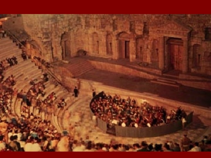 A görög A mai színház Nincs arcjáték A színészi egyéniség, A színészi sztár egyéniség kevésbé fontos Nincs jelmez Jelmez, pl. korhű kosztüm Zenével és tánccal kίsérik A zene és tánc szerepe csökken A kar szerepe hangsúlyos A kar eltűnik Új műfajokba épül be, pl. opera, operett, musical