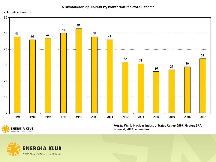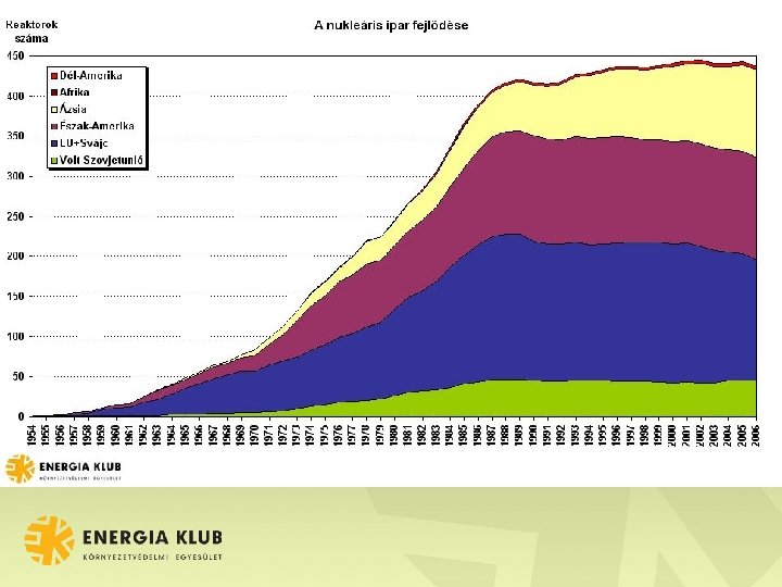 Helyzetkép 1. • A nukleáris ipar a ’ 80 -as évek vége óta gyakorlatilag stagnál • Növekedés csak Ázsiában, máshol csökkenés • EU: 1979 -ben 179 reaktor, ma 146 • Épülők száma: 34; alacsonyabb, mint az előző évtizedben
