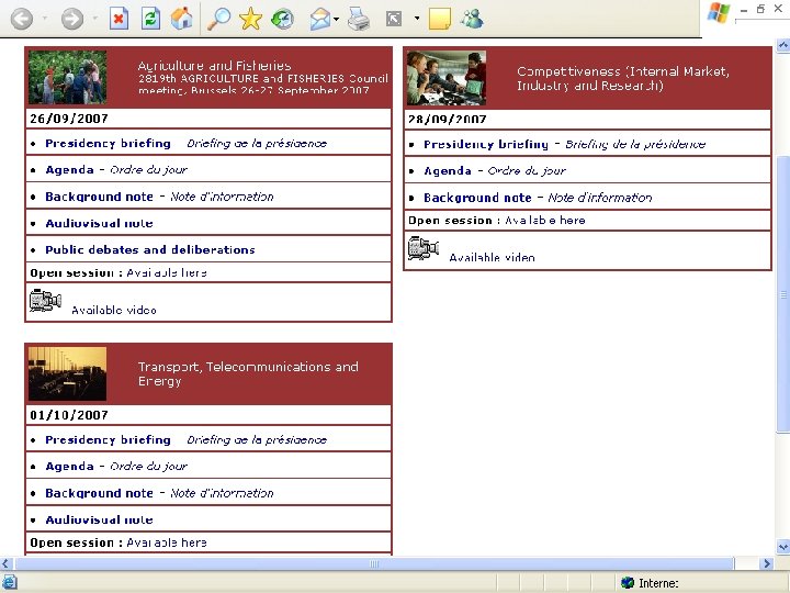 Az Ei. T ülése § Az első napot általában a plenáris ülésnek nevezett munkaszakasz jellemzi és az EU-t érintő aktuális ügyekkel kapcsolatos vélemények kicserélésére szolgál. § A fő tanácsterem teljesen el van szeparálva a külvilágtól. Ha az Ei. T egyik tagja kapcsolatba kíván lépni segítőivel, vagy egyik az állandó képviselet egyik tagjával, akkor ezt gombnyomással jelzi.