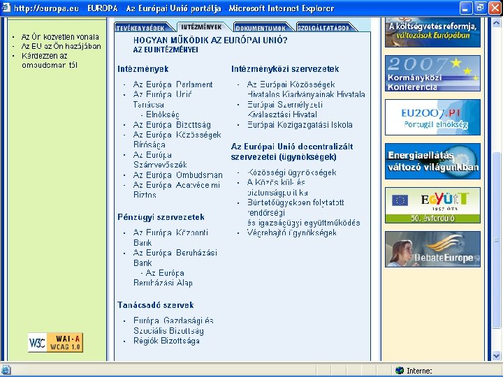 Az EU intzmnyrendszere Az Eurpai Uni nem egy