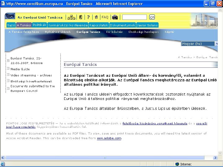Az EURÓPAI TANÁCS § A legmagasabb szintű politikai testület és eredetileg még csak nem is hivatalos szerve az EU-nak…. .