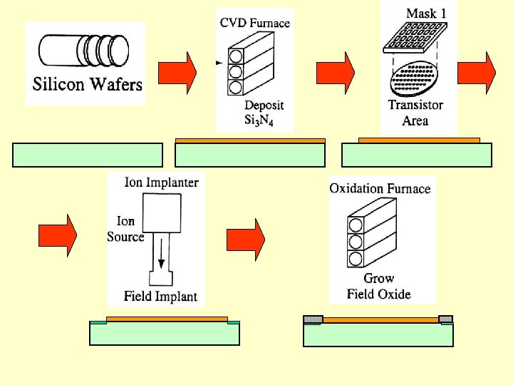 A megmunkálás során a szeletek csoportosan járják végig a technológia lépéseit, egy ilyen csoport neve: parti Az ábrán egy partinak a diffúziós kályhába történő behelyezése látható A félvezető gyártás különösen nagy tisztasági igényű. A technológiai lépések un. tiszta szobákban történnek