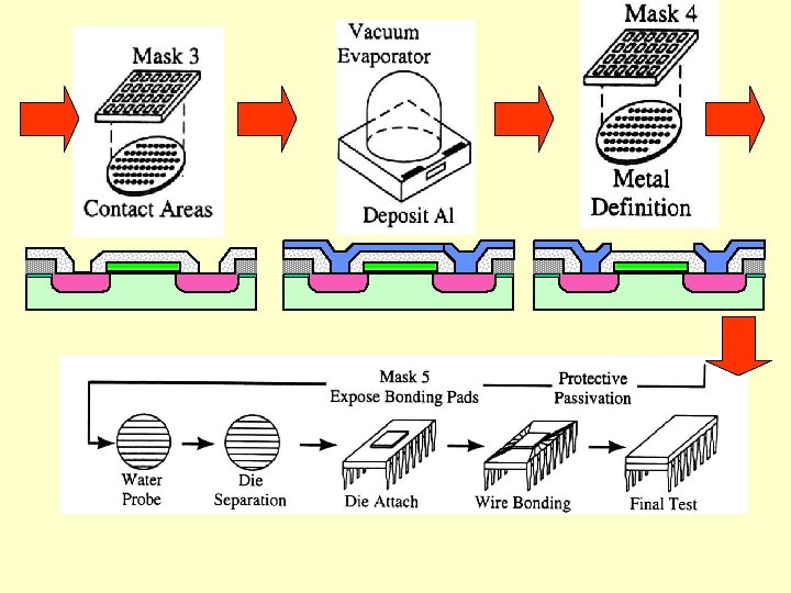 A félvezetőgyártás alapvető művelettípusai A félvezető gyártás során • adalékolási, • rétegfelviteli ill. • litográfiai műveletek váltják egymást