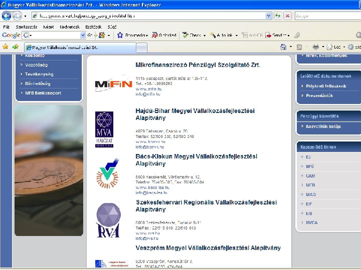 A Mikrohitelprogram első tapasztalatai • Február eleje óta: – – – 11 szerződött közvetítő ~ 600 vállalkozás ~ 3 mrd Ft. hitelállomány Átlagos kamatszint: 6, 5% Legkedvezőbb elérhető kamat: 5, 9% K&H Bank bekapcsolódása, indulás október 1 -től.