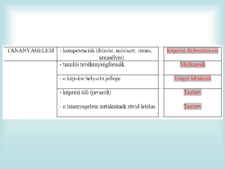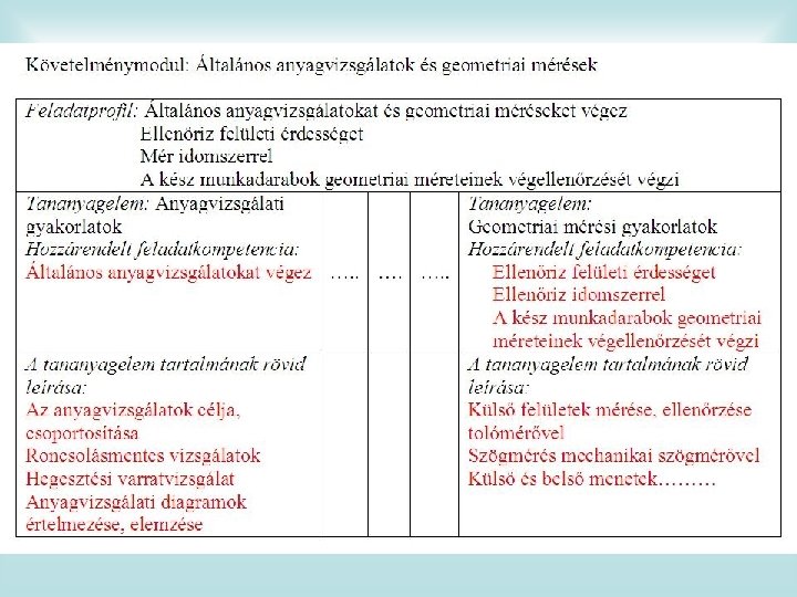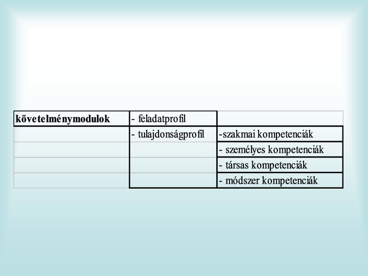 - feladatprofil követelménymodulok - tulajdonságprofil