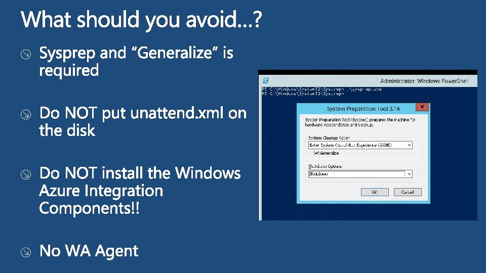 Sysprep’d Windows Server VHD on Hyper-V (Server 2008 R 2 and Windows Server 2012 RC) Windows Azure Image Windows Azure Disk