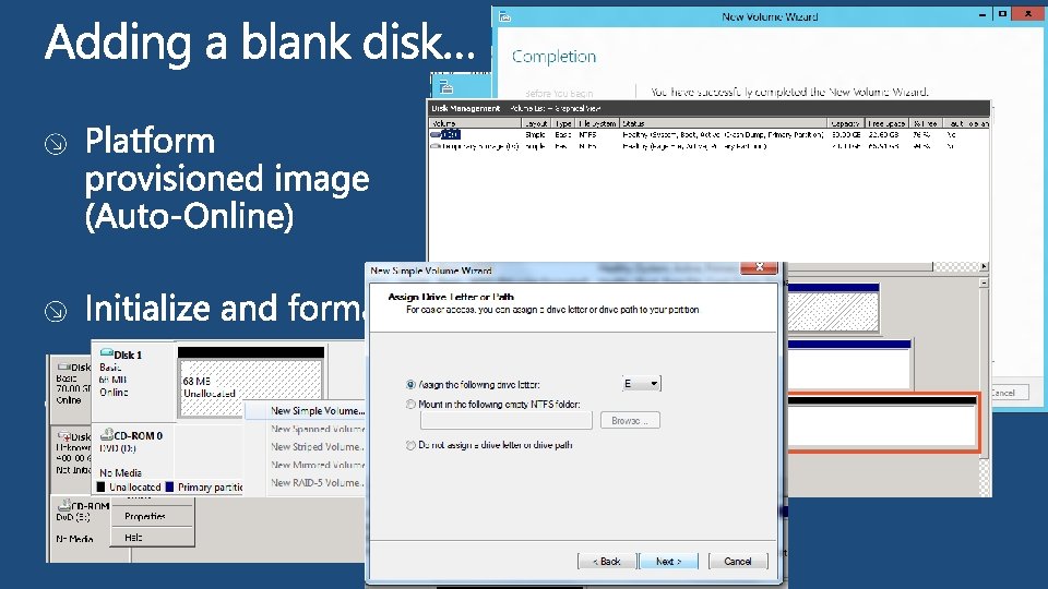 Data Disk OS OS Disk Customer’s Storage Account Stock Images Platform Storage Repository ISO Cache VM Add Server Unattend Provisioning Repository Storage Cache. VHD Hyper. Visor Compute à Hostname à Password à…
