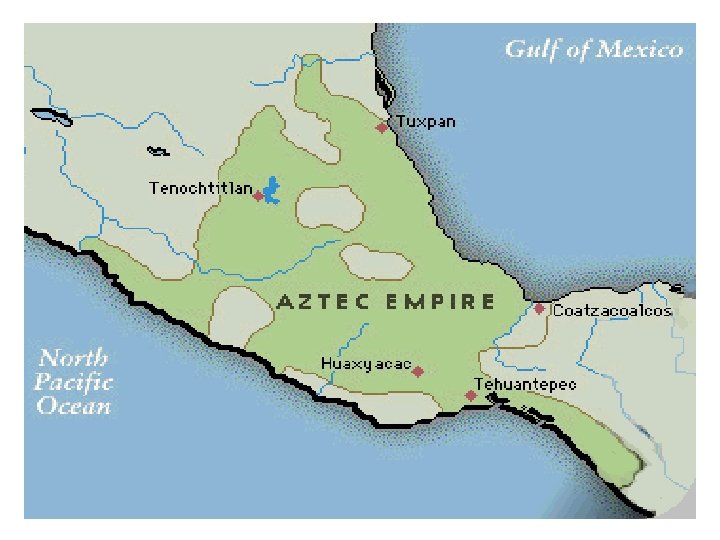 Aztec Empire n *Triple Alliance – Aztecs joined with Texcoco and Tlacopan to become the most powerful group in central America. n Power was based on military conquest. n Aztecs required tribute from the conquered tribes, usually gold, maize, cacao beans, cotton or jade.