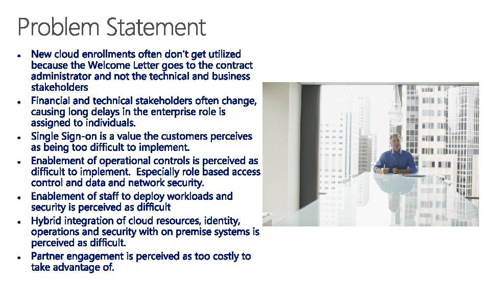 • • Office 365 is leading State and Local Government customers to the cloud. The Azure. Foundation can add a key capability for O 365: Single Sign-on. The Azure. Foundation brings a key workload to the cloud, helps align partners with customers, and enables future workloads for Azure. The alignment of investment will make the Azure. Foundation a consistent deployment of hybrid network, security and identity, which will enable Azure users for a delightful experience in the cloud.