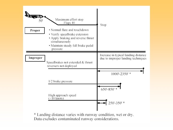Landing Distance V = 1. 23 VS 1 G Landing Distance 60% Runway Length 50 ft Actual Landing Distance Dry Factor = 1. 67 Required Landing Distance Wet Landing Distance = 1. 15 x Required Landing Distance Wet Factor = 1. 15