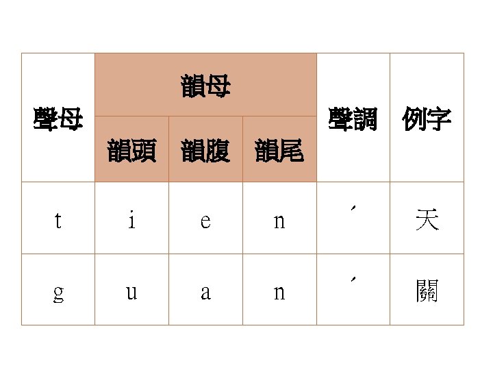 聲母+複元音韻母+聲調 聲母 韻母 拼音 拼音 (ˊ) 拼音 (ˇ) 拼音 (ˋ) t ia tiaˊ tiaˇ tiaˋ t io tioˊ tioˇ tioˋ t ie tieˊ tieˇ tieˋ t iu tiuˊ tiuˇ tiuˋ t ai taiˊ taiˇ taiˋ t au tauˊ tauˇ tauˋ