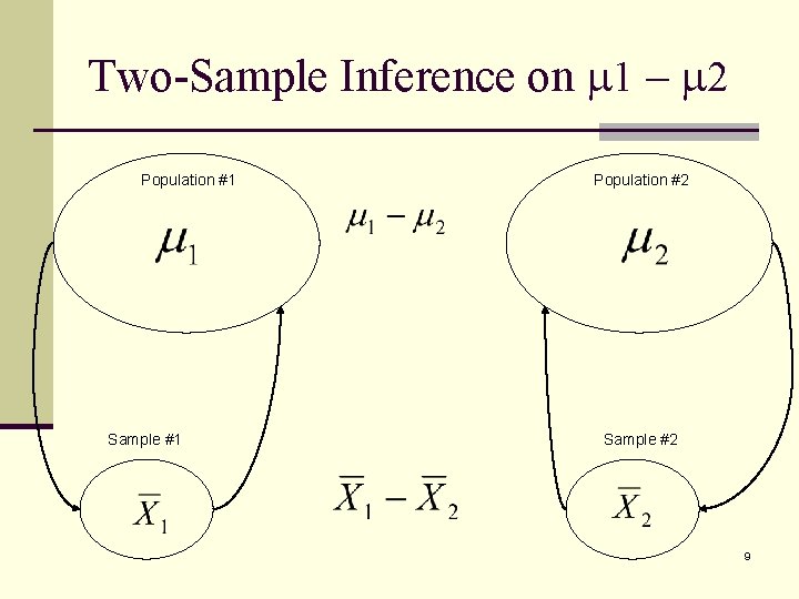 Two-Sample Inference on m 1 – m 2 Population #1 Sample #1 Population #2 Sample #2 9