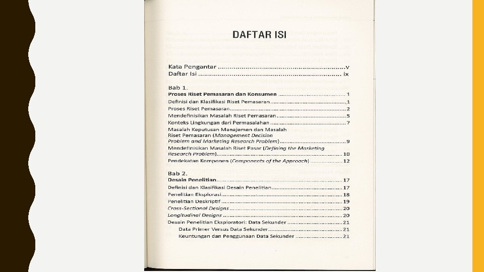 DEFINISI DAN KLASIFIKASI RISET PEMASARAN Riset Pemasaran memiliki tanggung jawab untuk menilai dan menyediakan informasi apa yang dibutuhkan manajemen untuk pengambilan keputusan. Informasi tersebut harus tepat, dipercaya dan relevan. Riset pemasaran dan konsumen dapat didefinisikan sebagai kegiatan untuk mengidentifikasi, mengumpulkan, menyebarluaskan data dan informasi mengenai pasar dan perilaku konsumen secara sistematik. Menurut Malhotra (2010) riset pemasaran adalah fungsi yang menghubungkan konsumen, pelanggan, dan masyarakat dengan pemasar melalui informasi-informasi yang digunakan untuk mengidentifikasi dan menentukan peluang dan masalah pemasaran; menghasilkan, memperbaiki, dan mengevaluasi tindakan pemasaran; memantau kinerja pemasaran dan meningkatkan pemahaman pemasaran sebagai proses.