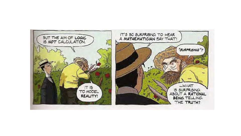 Gottlob Frege (1848 -1925) • German mathematician, logician, and philosopher • Descendant of one of the founders of Lutheranism, Philipp Melanchthon • Instructor at various levels (sometimes paid, sometimes not) at University of Jena • Dissertation on Geometry