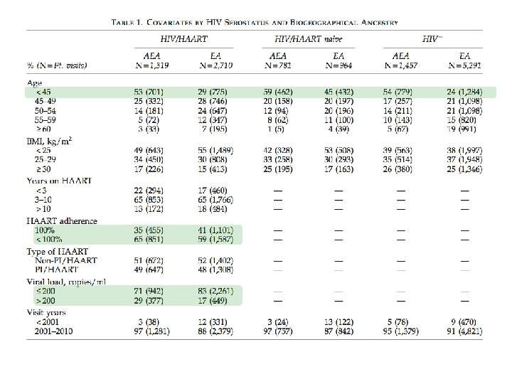 Discussion/Conclusions • HIV/HAART individuals have significantly different lipid profiles than HIV- controls • The atherogenic effects of chronic HAART exposure differs by BGA and is more severe in EA men than AEA men – Higher mean triglycerides – Lower mean HDL-C