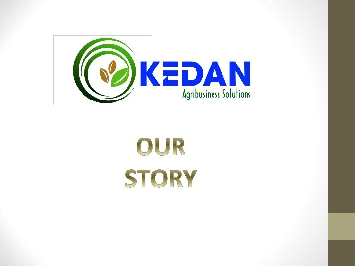 BACKGROUND • Legal Background: KEDAN is a limited liability company incorporated under the laws of Ghana on the 18 th of August, 2014 with registration number CS 473642014. The company was issued with a Certificate to Commence Business on 18 th August, 2014 and authorized to engage in the business of Agricultural activities. • Business Focus: o Agribusiness as its main business line. o Engaged in maize milling as well as large scale commercial farming via nucleus and out grower farming system. o The crop cultivated is mainly Maize (white and yellow). • Our services: o o o Farm input Credit and Commercial Farming. Maize milling/Processing. Design and implementation of viable technology based agricultural projects Tractor mechanization services Post harvest services-Threshing/shelling and Warehousing Commodity aggregation and marketing. • Our product range: o Maize grits | Maize flour |Fortified Maize Flour | Maize Bran | Whole white Maize | Yellow maize |Soya bean. ___________________________________________________ The fortified maize flour is suitable for porridges and maize based meals as it contains minerals and vitamins premixes that will take care of the nutritional needs of our consumers especially children between 5 months to 6 years and breastfeeding mothers.
