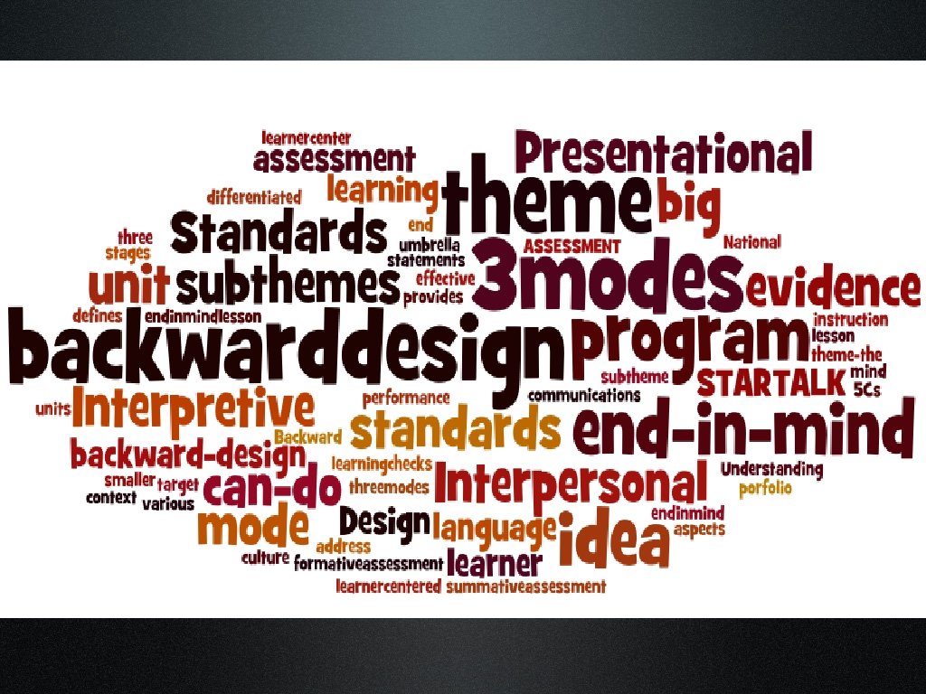 Backward Design* • Essential Question: • How do teachers create student-centered standards-based thematic units that engage all learners using Backward Design? • *Sources: Understanding by Design and Toni Theisen STARTALK Summer 2011