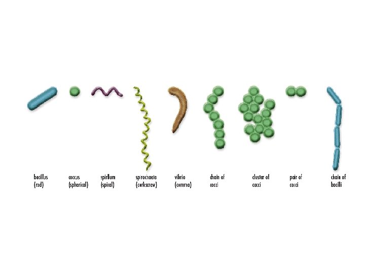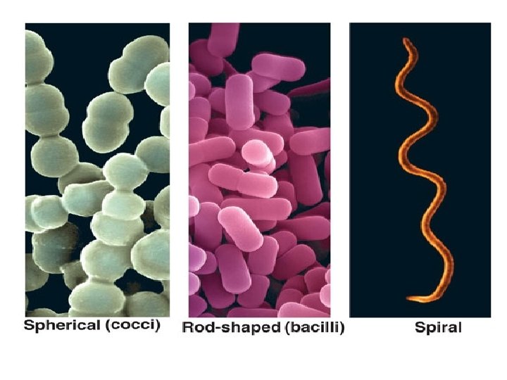 Bacteria • Moneran Kingdom- single celled organisms • • CLASSIFIED BY BODY SHAPES: Spirilla – corkscrew shaped Bacillus – Rod- shaped Coccus - Sphere Shaped (round)