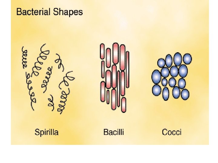 Create a bacteria dish ! coccus spirilla 15 Red 20 coccus Blue spirilla Bacillus 25 yellow bacillus