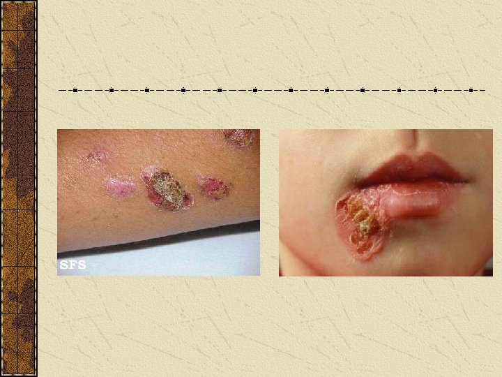 Clinical features 1 ry lesion: vesicle Crust is formed when the lesion becomes dry.