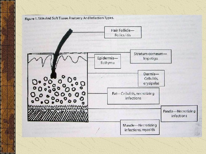 Bacterial Infections • Staphylococcus aureus and Streptococcus pyogenes account for the vast majority of skin infections. • Both are part of the normal flora of our skin.