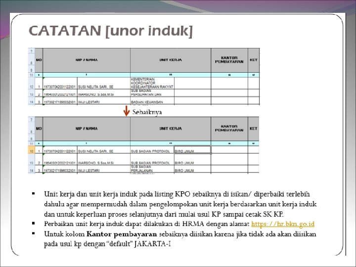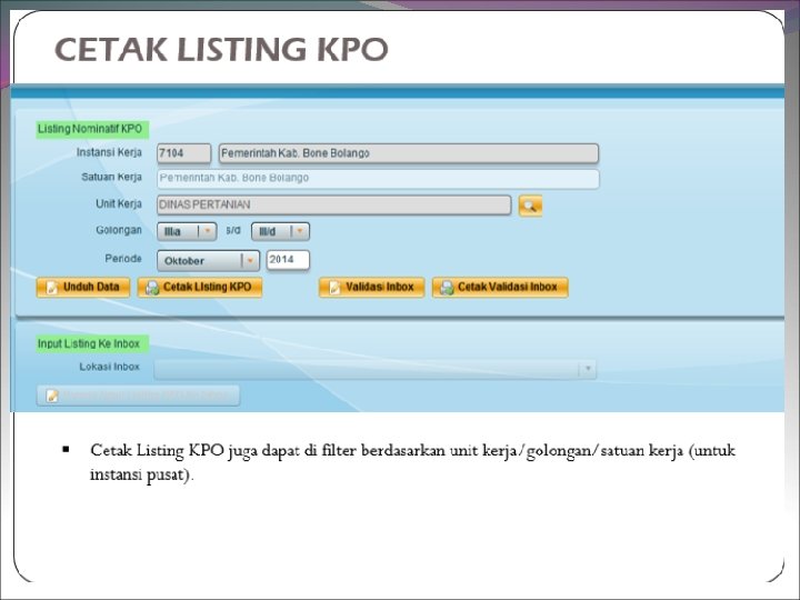 KUNCI UTAMA KPO LESS PEPER o o o • NAMA DAN NIP. • PANGKAT DAN GOLONGAN. • MASA KERJA o • GAJI o • UNIT KERJA o • ATASAN LANGSUNG SESUAI SKP o • NILAI SKP o • STLUD 9