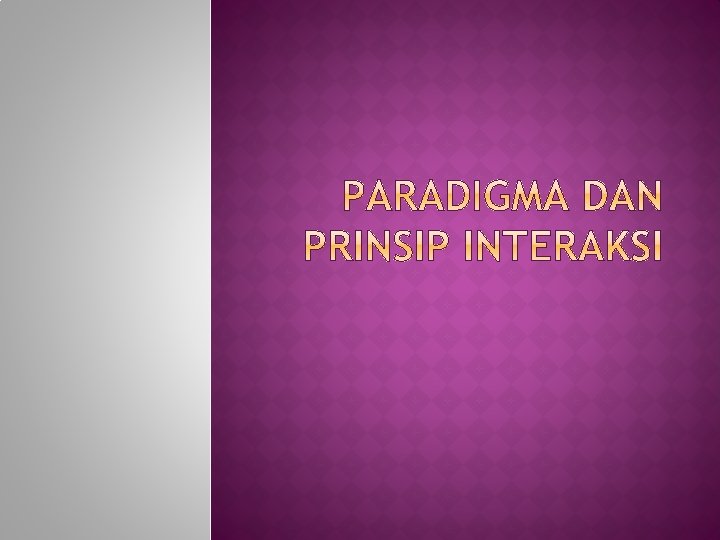 � PARADIGMA: Sistem interaksi yang berhasil pada umumnya diyakini akan meningkatkan daya guna dari sistem tersebut � PRINSIP: Interaksi efektif dari berbagai aspek pengetahuan seperti psikologi, komputasi dan sosiologi, yang mengarahkan pada peningkatan desain dan evolusi produk yang pada akhirnya akan meningkatkan daya guna sistem tersebut